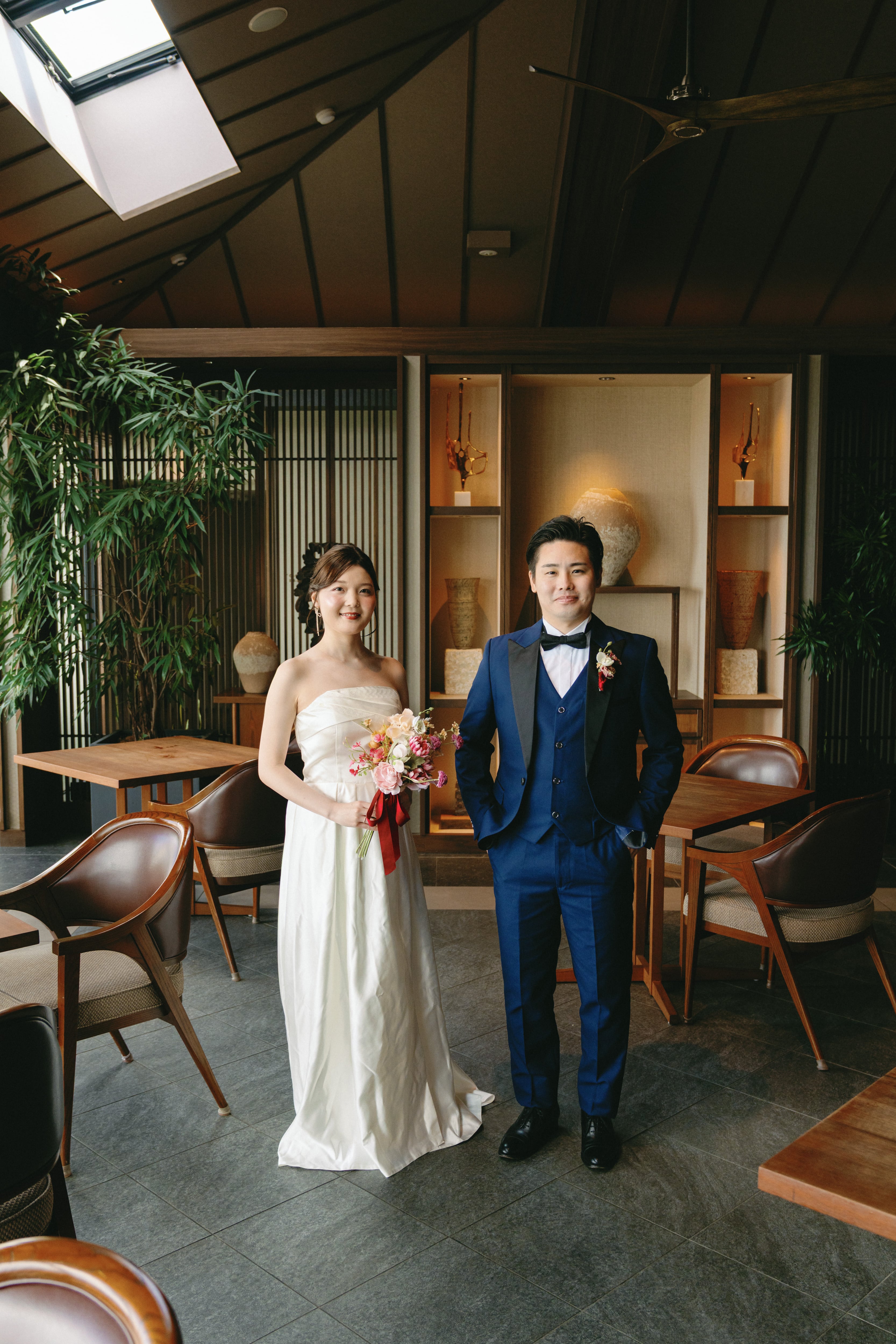 直線的なシルエットのスレンダーラインは、コンパクトな会場がオススメです。